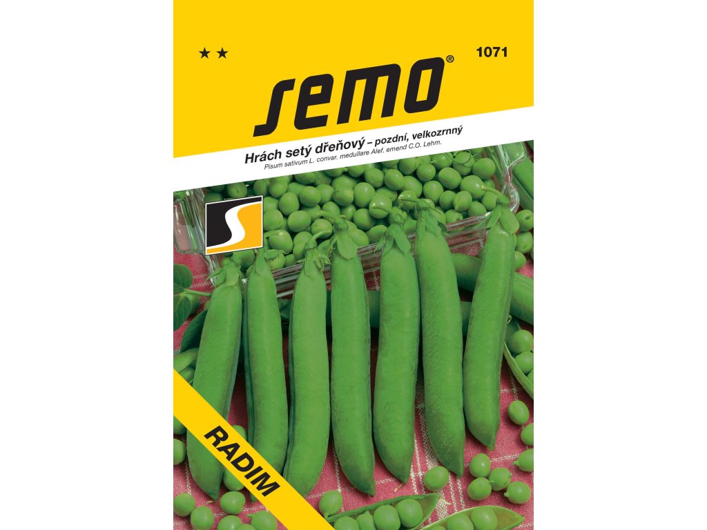 Hrách setý dřeňový Radim je pozdní odrůda hrachu s velkým zrnem, dorůstá výšky 60 až 70 cm, lusk je dlouhý, rovný, ostře zakončený s 8 – 9 středně velkými, tmavými zrny, HTS je 140 g.