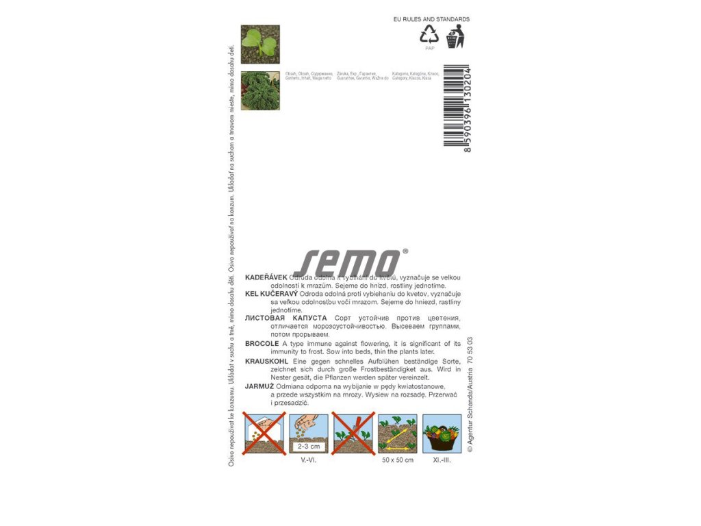 Raný, výnosný a polovysoký, odrůda je odolná k vybíhání do květu a vyznačuje se velkou odolností k mrazům, má zelený list, úzce eliptický, silně zkadeřený.