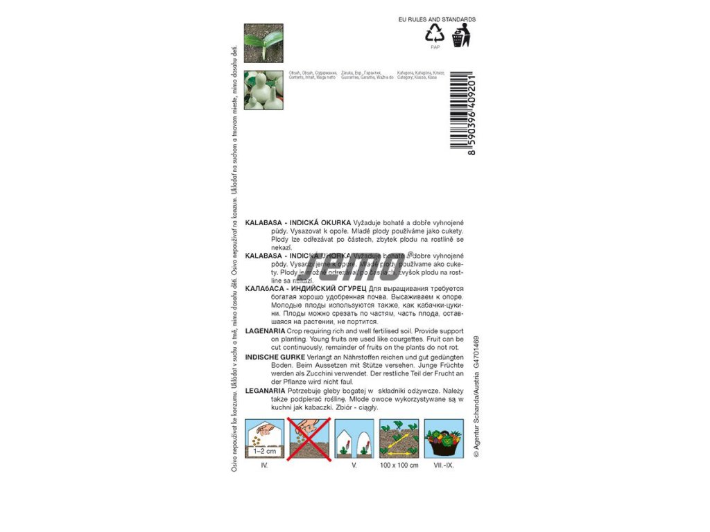 Jednoletá rostlina s popínavou lodyhou a světle zelenými listy, plody mají hruškovitý tvar a dorůstají 20 – 30 cm, vyschlé plody slouží jako originální dekorace.