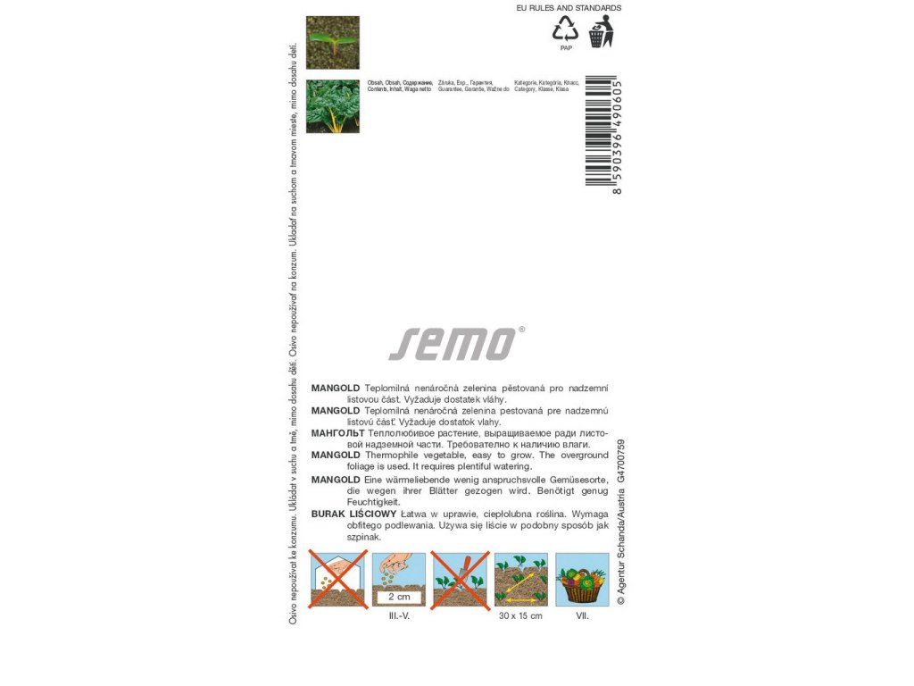 Křehký hybridní řapíkatý mangold, který vytváří svěže zelené listy se šťavnatými žlutými řapíky, listy a stonky lze sklízet průběžně.