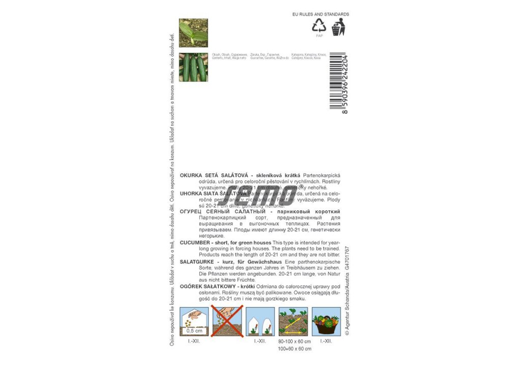 Raný až poloraný partenokarpický hybrid okurky salátové typu Multifruit, vhodný pro pěstování ve vytápěných i nevytápěných rychlírnách.