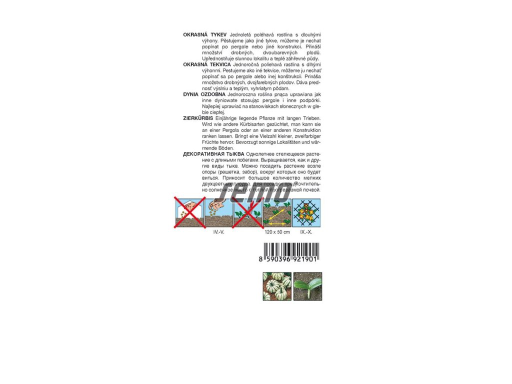 Jednoletá poléhavá rostlina s dlouhými výhony, kterou pěstujeme jako jiné tykve, má menší, kulovité až mírně zploštělé plody s bílou slupkou se zelenými pruhy.