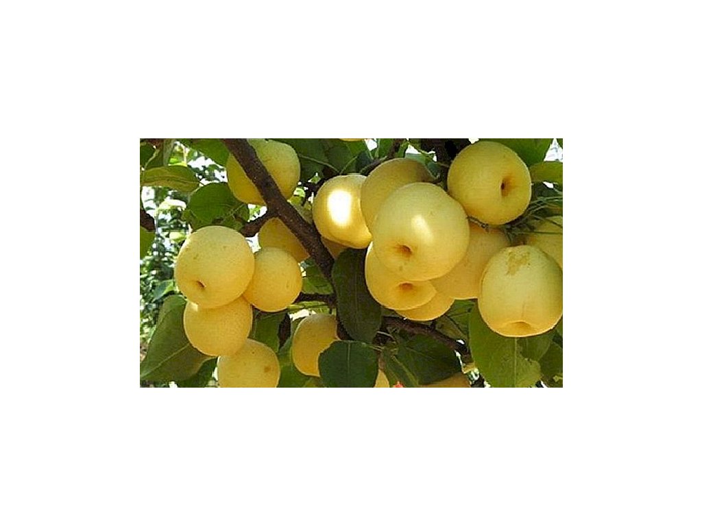 Asijská hrušeň. Plody jsou kulaté, sladké a šťavnaté. Slupka je křehčí než u klasických hrušek.