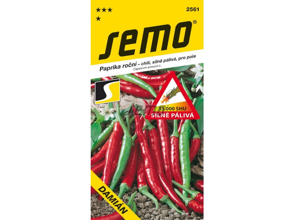 Paprika Damián – pálivá chili paprička, červené barvy určená pro pěstování na poli i v krytech, plody jsou tenké, středně dlouhé, rostliny vyžadují teplo a dostatečnou zásobu živin.