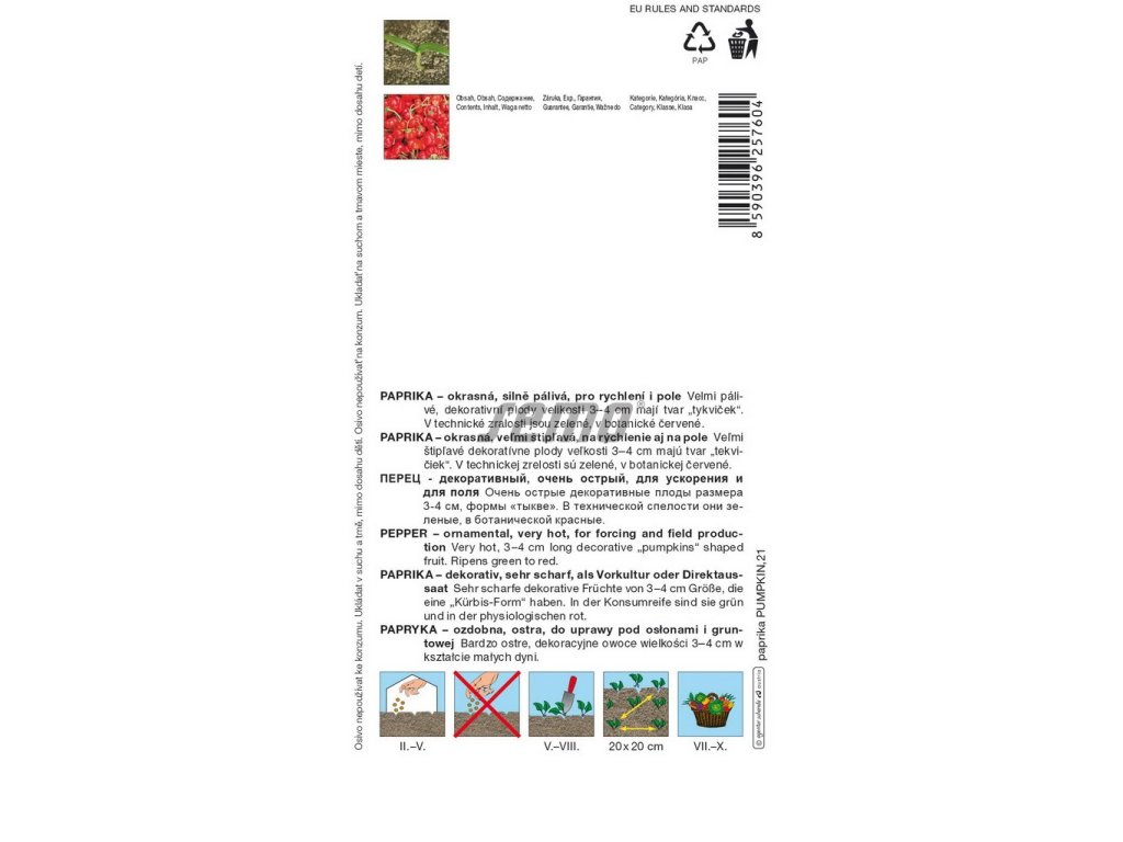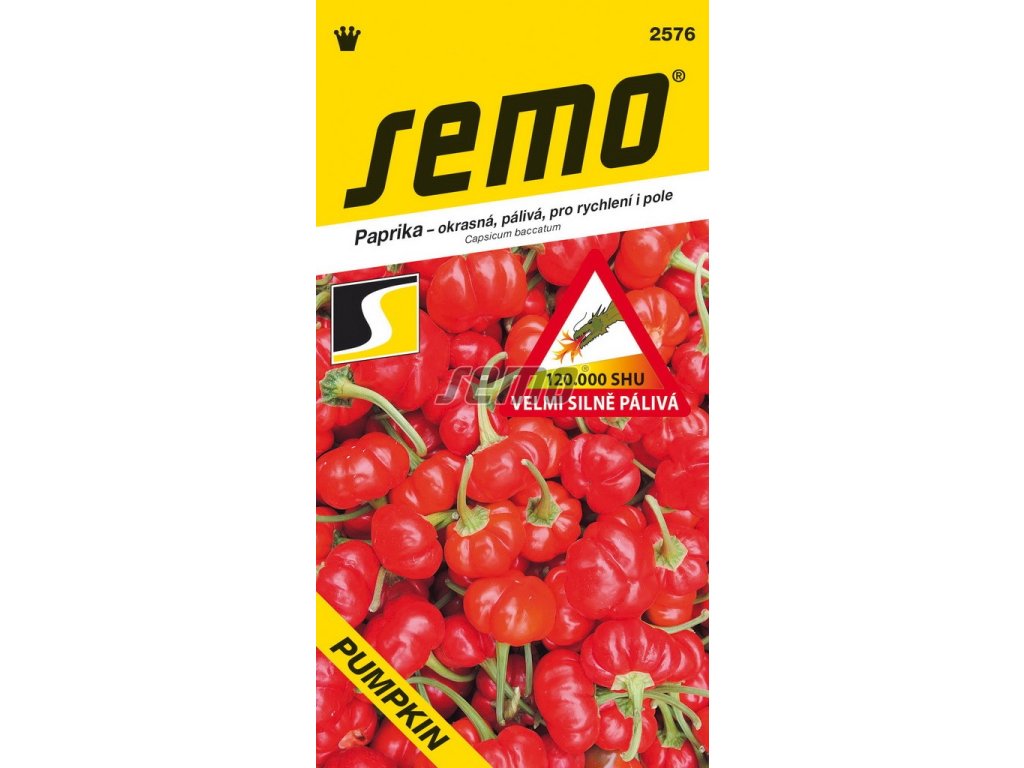 Paprika křídlatá Pumpkin je chutná, velmi silně pálivá paprika (SHU 120 000). Tato pálivá paprika Pumpkin má tmavě červené dekorativními plody ve tvaru patizonu.