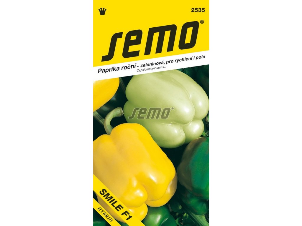 Paprika roční Smile F1 je raný až poloraný hybrid středního až vyššího vzrůstu určený pro pěstování v krytech, plody jsou velké silnostěnné kvádry, v botanické zralosti žluté.
