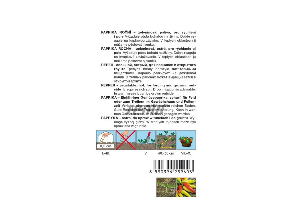 Paprika Srilanus F1 je pálivá paprika (SHU 12 000), vhodná pro rychlení, pole i do nádob. Plody typu banana jsou kratší, se silnější stěnou, šťavnaté.