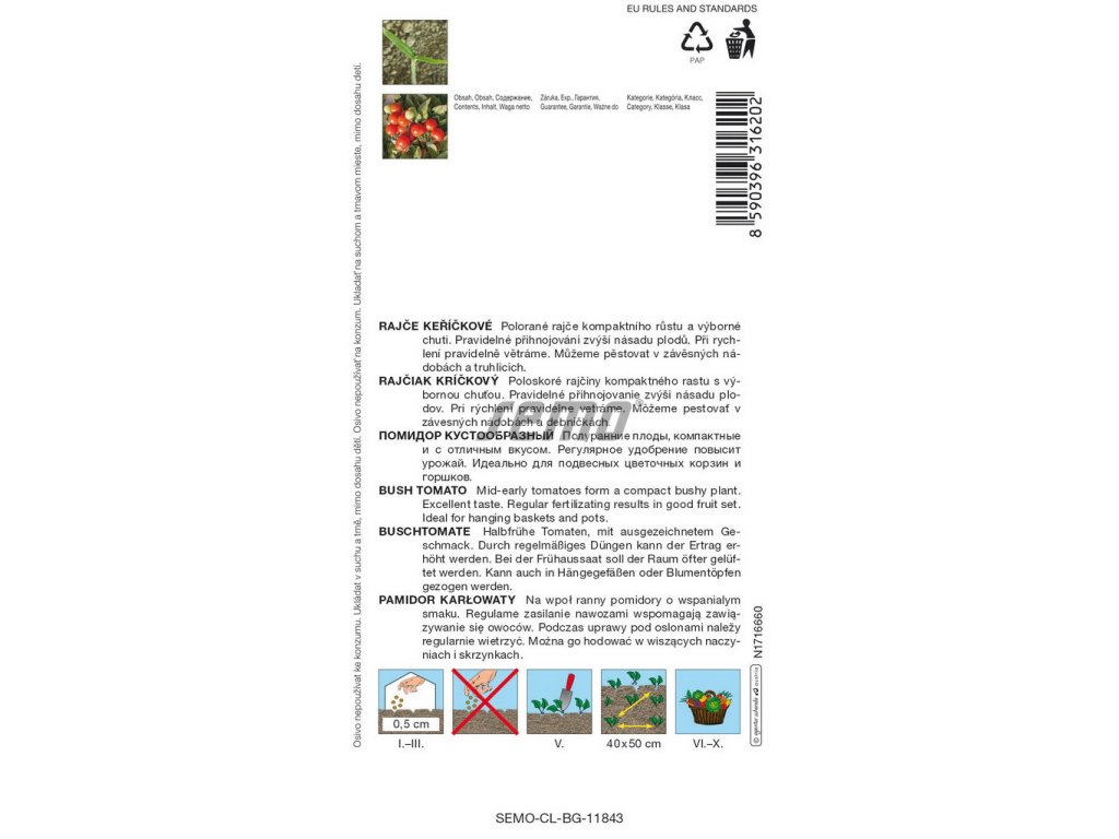 Rajče keříčkové Imunek F1 je poloraná kompaktní odrůda keříčkového rajčete s kulatými plody výjimečné chuti. Má odolnost vůči stresům a rezistenci k listovým chorobám.
