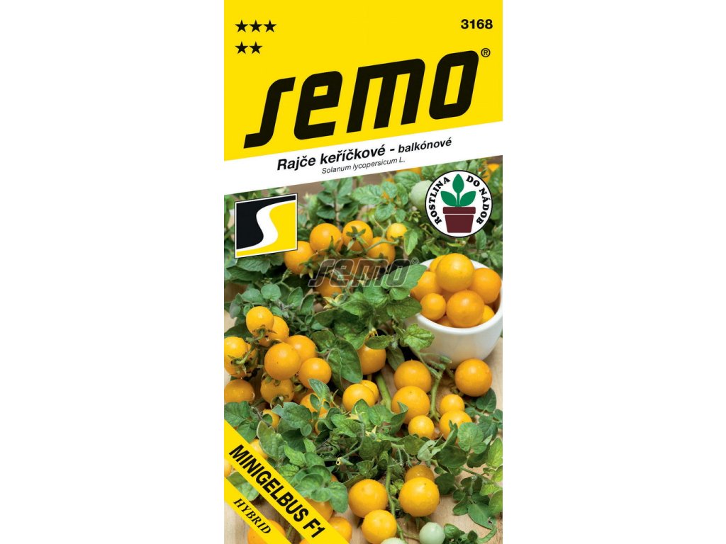 Rajče keříčkové Minigelbus F1 je velmi rané keříčkové rajče. Toto rajče je vhodné i do menších nádob. Rajče keříčkové Minigelbus F1 má kulaté žluté třešňové plody.