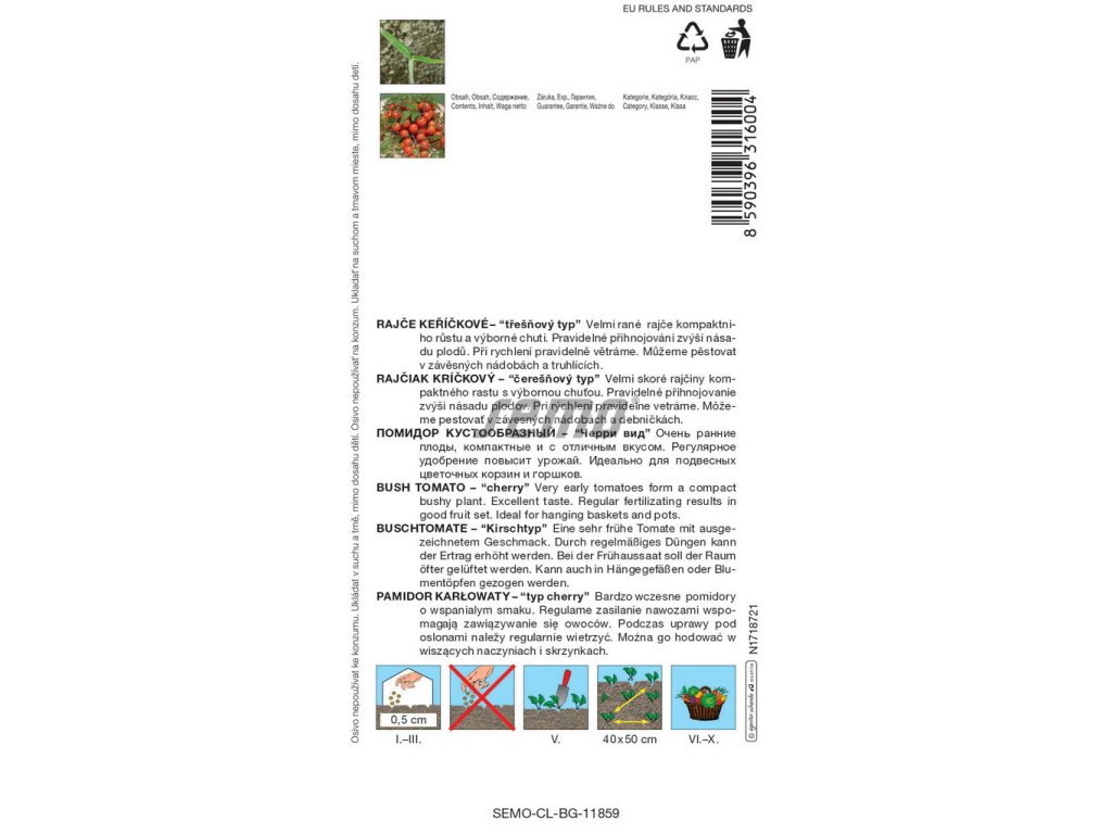 Rajče keříčkové Minirotus F1 je velmi rané keříčkové rajče. Toto rajče je vhodné i do menších nádob. Rajče keříčkové Minirotus F1 má kulaté červené třešňové plody.