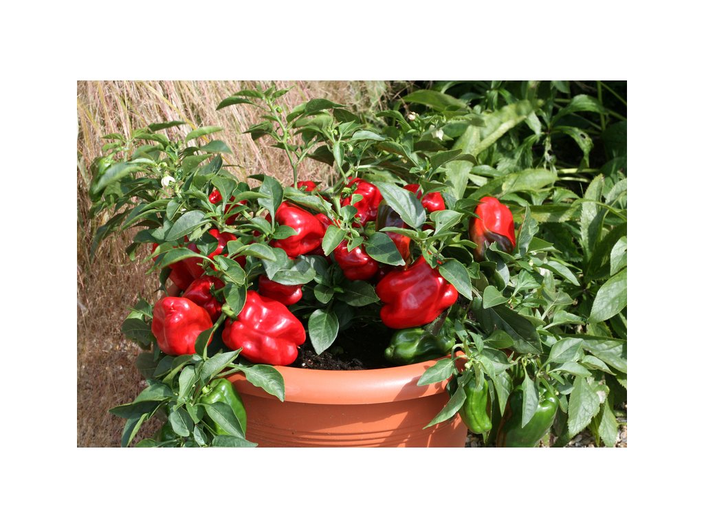Raná červená paprika, která se nechá pěstovat na balkóně, terase či v závěsném květináči.