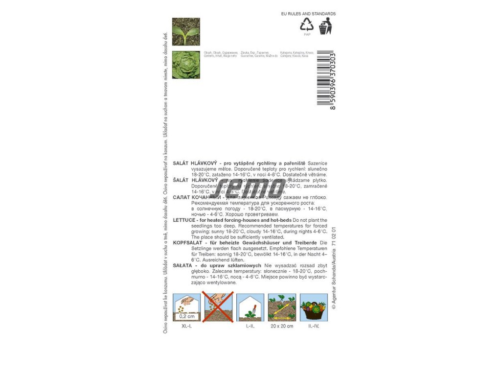 Osvědčená odrůda pro nevytápěné skleníky a studená pařeniště s humózní strukturní zeminou, nedoporučujeme pro rané polní pěstování.