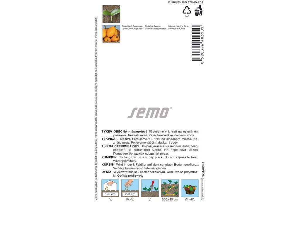 Tykev obecná Baby Spaghetti F1 je raná středně vzrůstná špagetová tykev s baby plody, vegetační doba do prvních plodů je jen 90 dní, odrůda má výbornou skladovatelnost.
