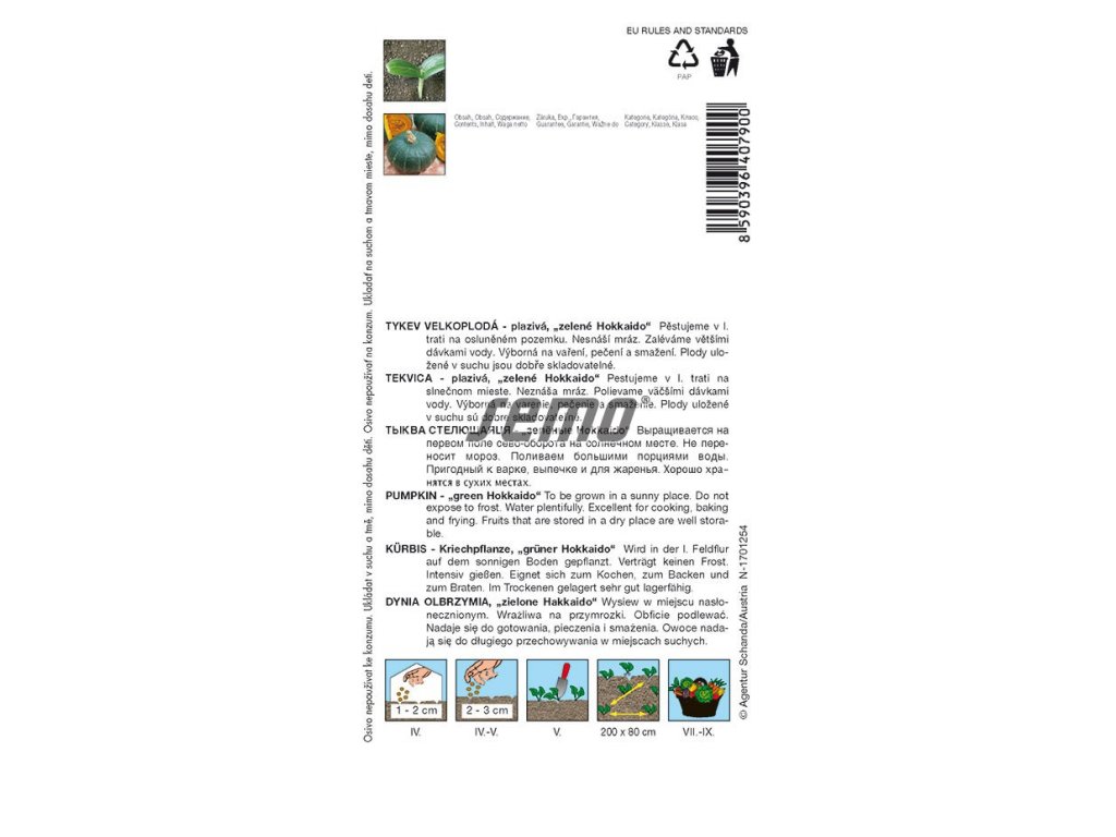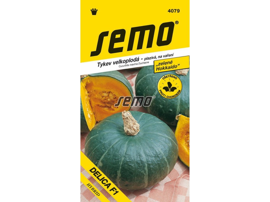 Ploše kulovité tmavozelené plody se světlým žíháním, dužina je jasně oranžová, chutná, slupka je tužší, plody jsou ale díky ní lépe skladovatelné.